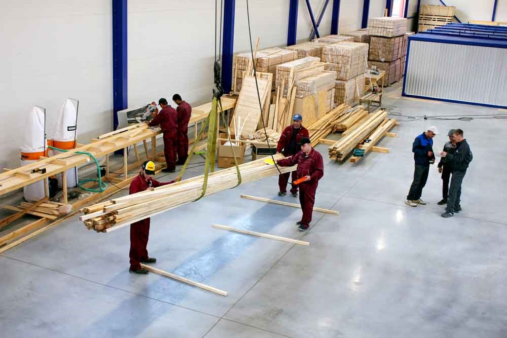 У нас большого размера крытый производственный цех, площадь которого позволяет собирать несколько конструкций одновременно и независимо от погодных условий, работа не останавливается не на минуту. В штате компании всегда работают высококвалифицированные специалисты, разделенные на бригады, благодаря этому нам удалось наладить процесс сборки так что простоев в работе нет и процесс изготовления занимает минимальные сроки.